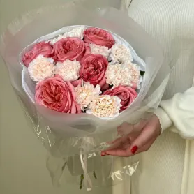 Букет с пионовидными розами и диантусами