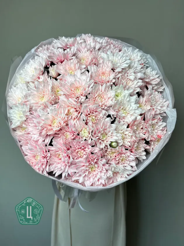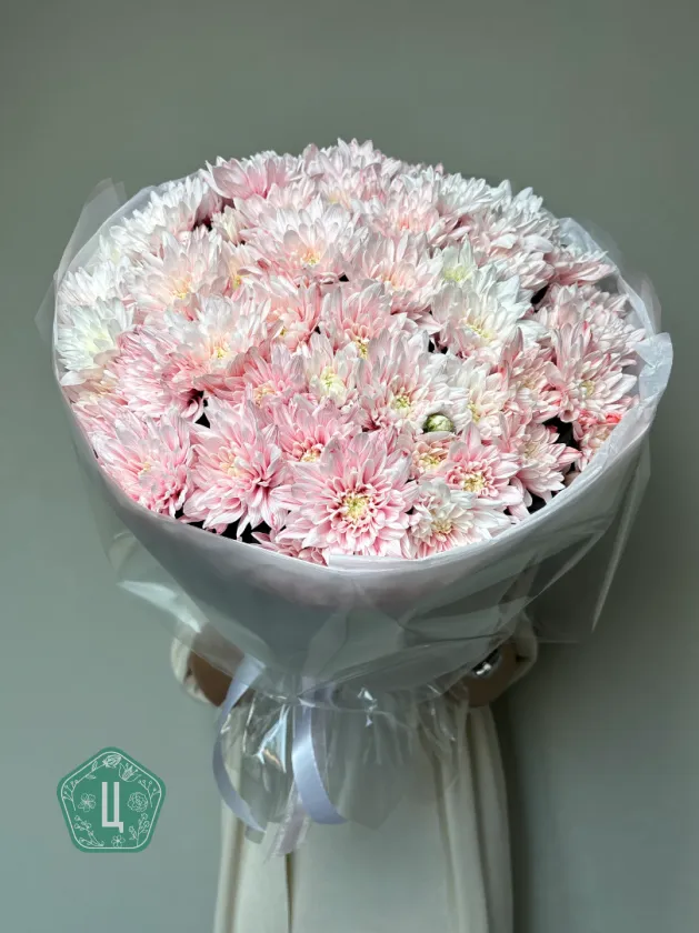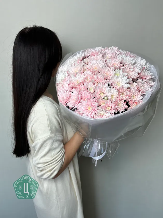 Букет из 11 кустовых розовых хризантем «Сияние»