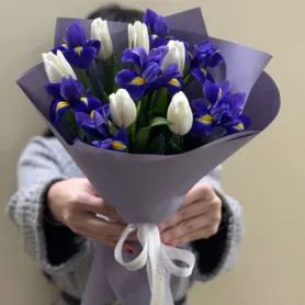 Букет с тюльпанами и ирисами