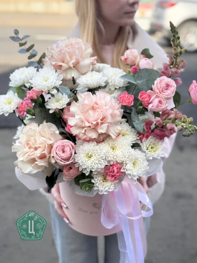 Композиция в шляпной коробке «Любовь с первого взгляда»