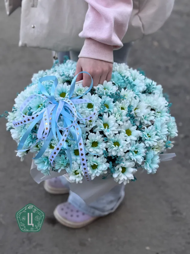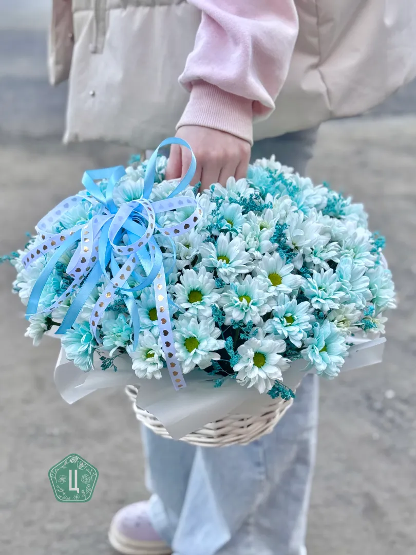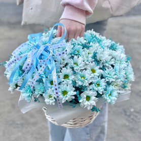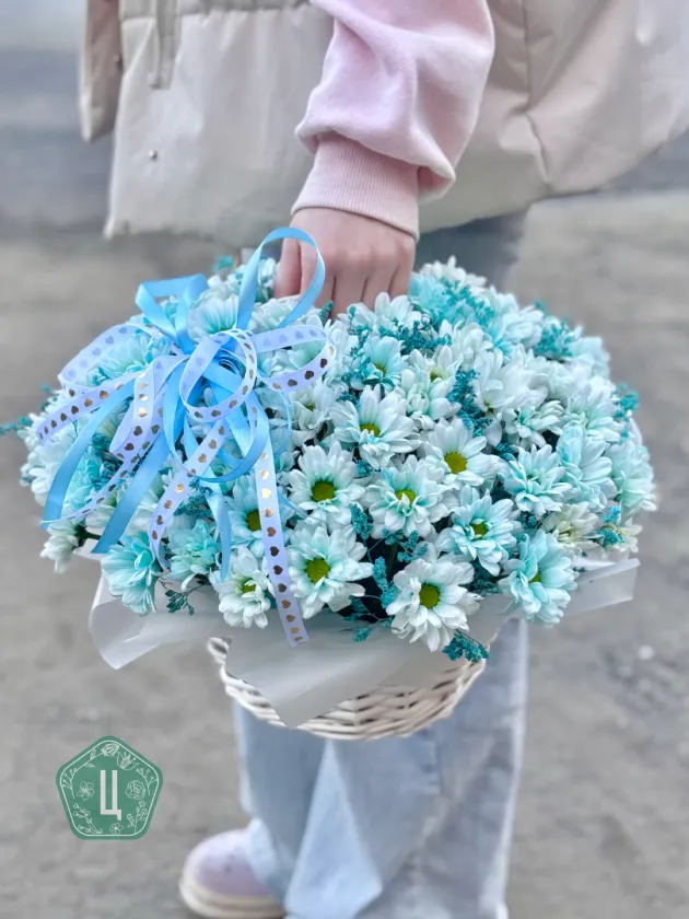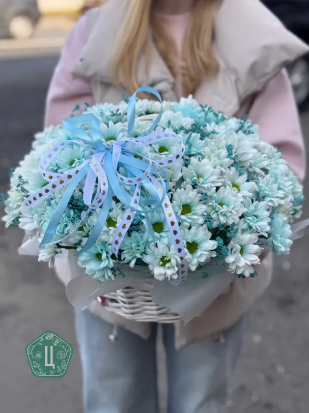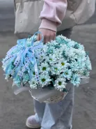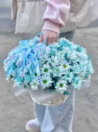 Корзинка голубых хризантем кустовых