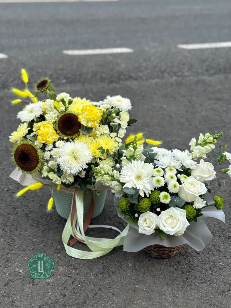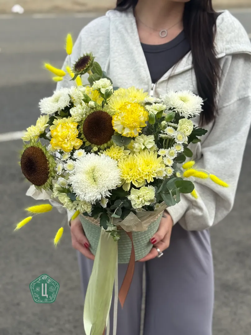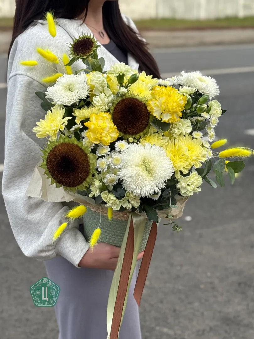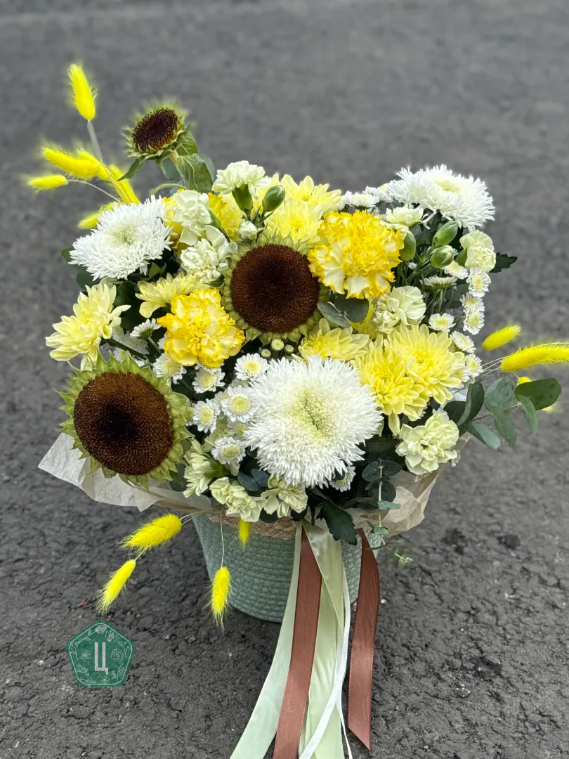 Композиция в корзине с подсолнухами