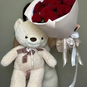 Подарочный набор «Мишка 60см + букет роз»
