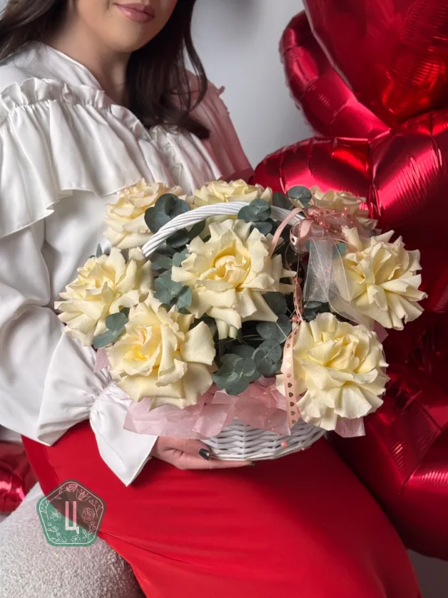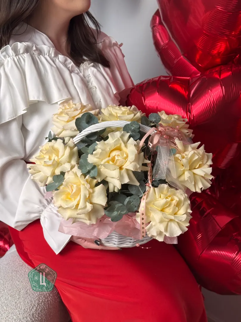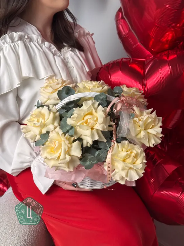 Корзина с белыми французскими розами потрясающий подарок для любого повода