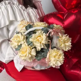 Корзина с французскими розами «Лагуна грёз»