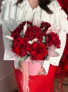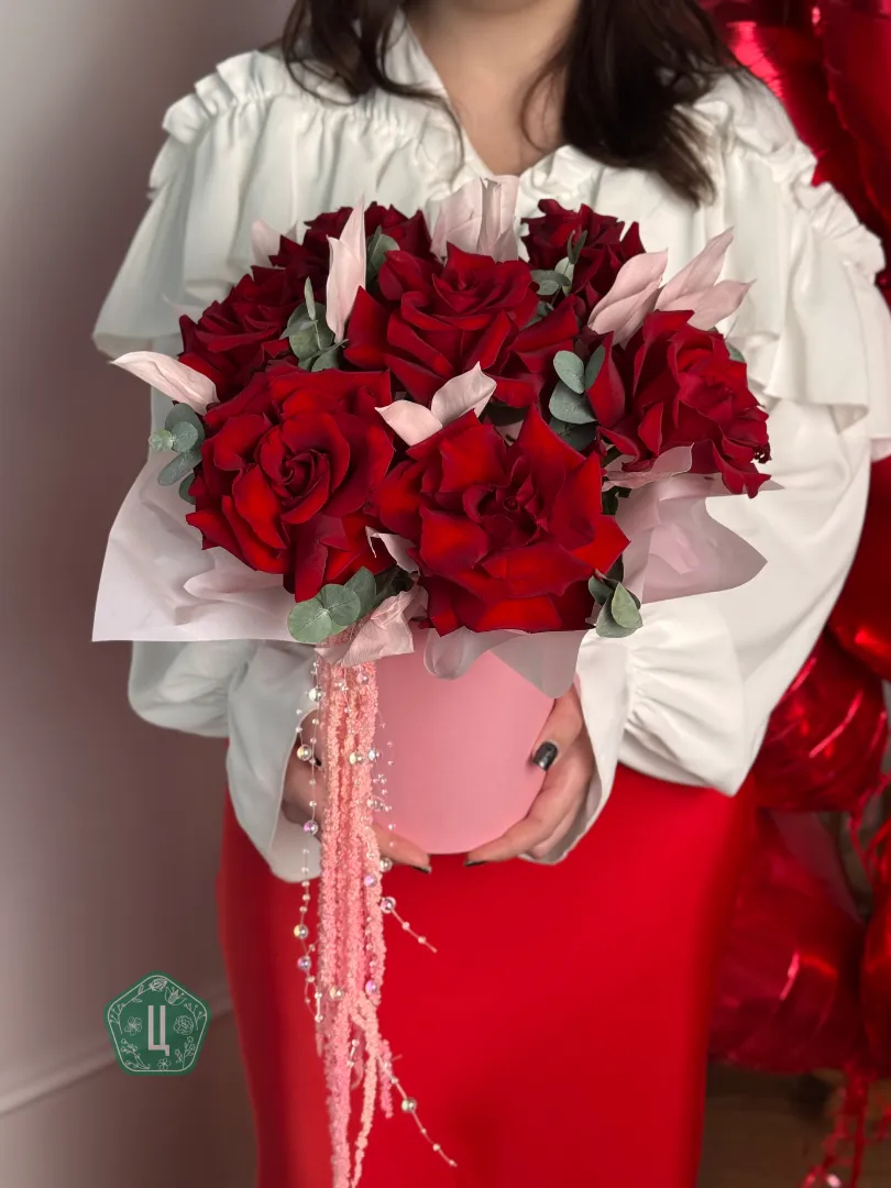 Шляпная коробка с французскими красными розами идеальным подарок чтобы порадовать свою любимую
