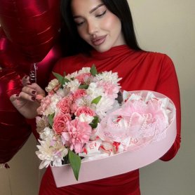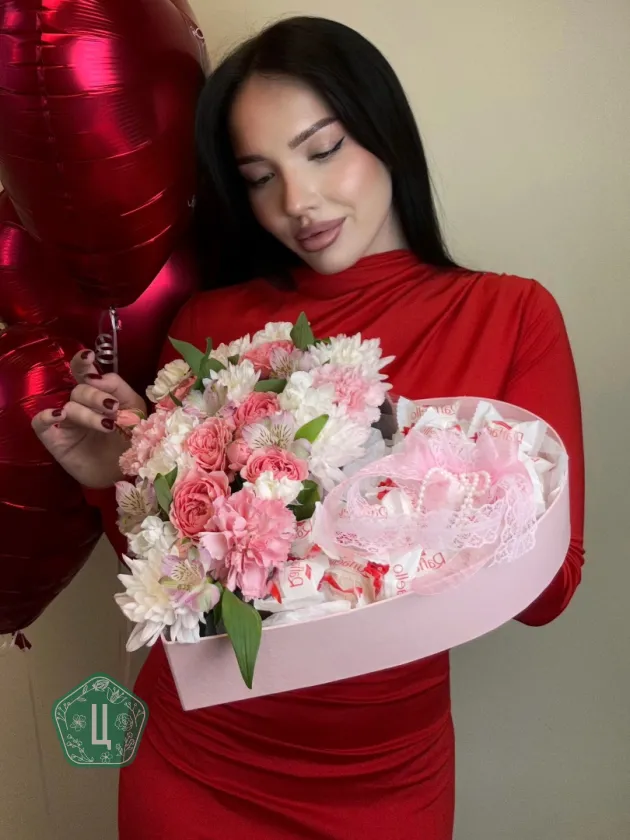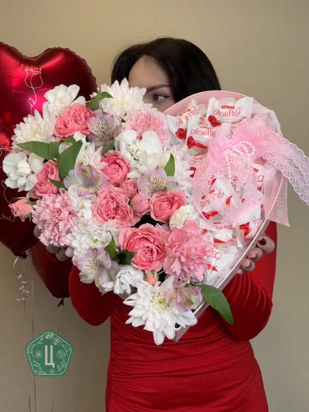 Сердце с цветочной композицией и рафаэлло