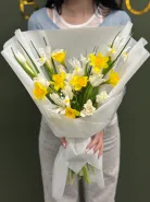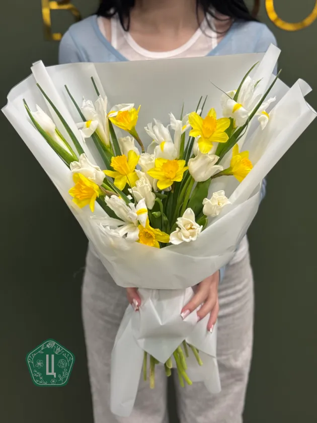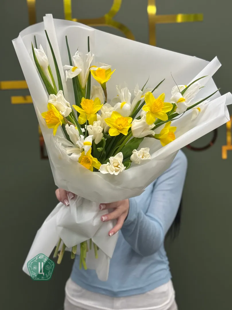 Букет «Весеннее чудо» с нарциссами, тюльпанами, ирисами