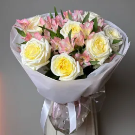 Букет с розами и альстромериями «Восторг»