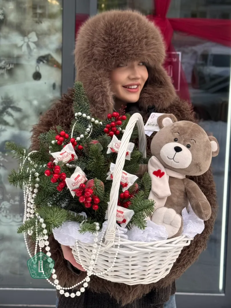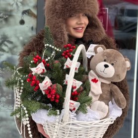 Подарочная корзина с нобилисом, мишкой и конфетами
