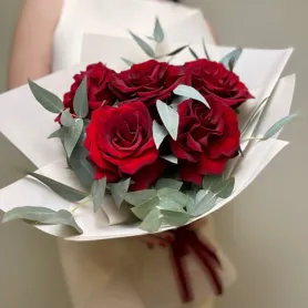 Букет с французскими розами и эвкалиптом