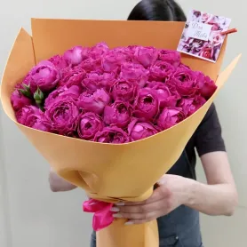 Монобукет из шикарных кустовых роз в стильной упаковке.