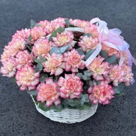 Корзина 43 французские розы с эвкалиптом