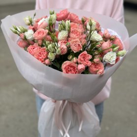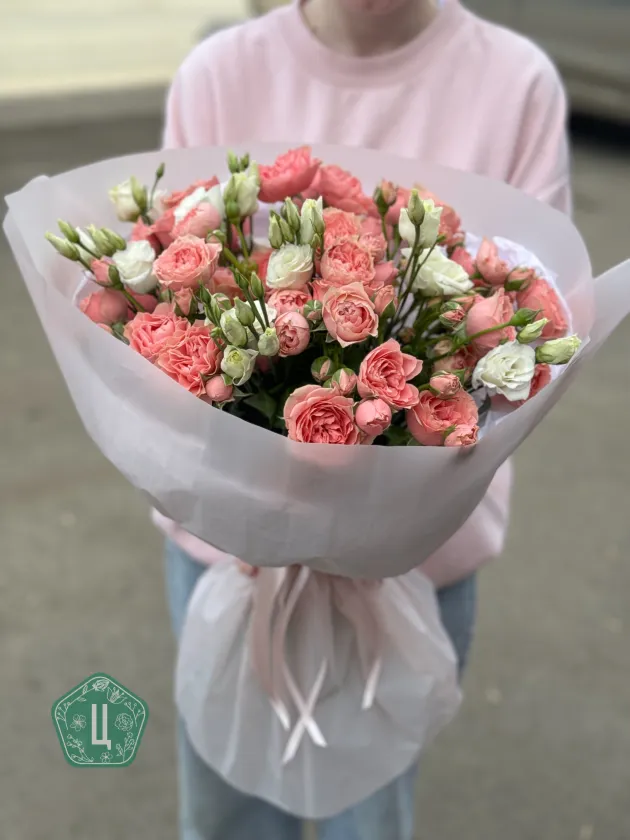 Монобукет из кустовых роз и эустомы