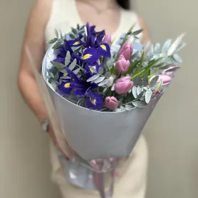Букет 11 тюльпанов + 3 ириса
