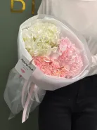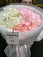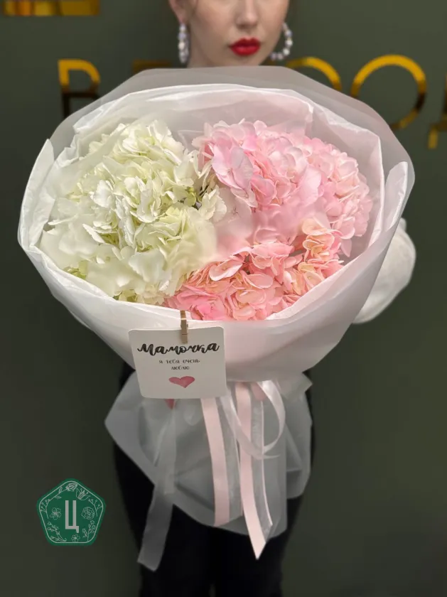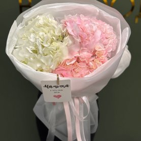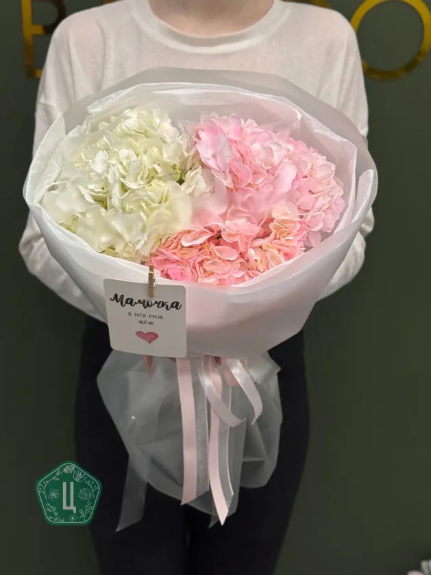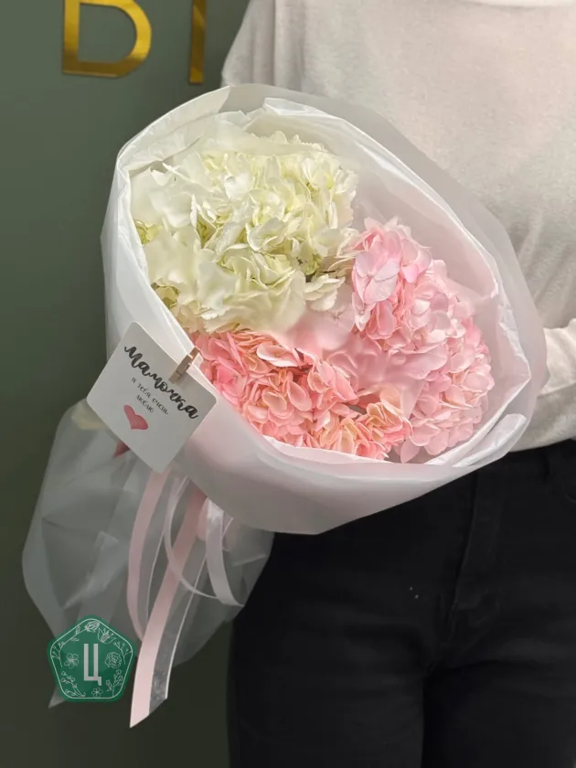Нежный и воздушный букет из трёх гортензий в сочетании розовых и белых оттенков — идеальный выбор для тех, кто любит утончённость и лёгкую романтику. Объёмные соцветия создают эффект «облака», а аккуратная стильная упаковка подчёркивает естественную красоту цветов.Такой букет станет прекрасным подарком маме, девушке, подруге, а также идеально подойдёт для дня рождения, свидания или любого приятного повода.Дарит тепло, заботу и атмосферу праздника с первого взгляда. 💗