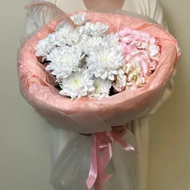 Букет «Персиковая зефирка» с гортензией