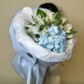 Букет «Голубая зефирка» с гортензией