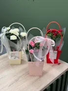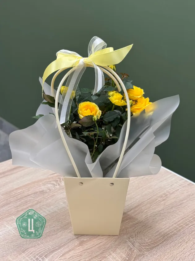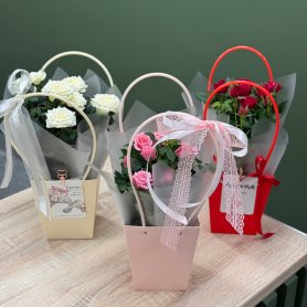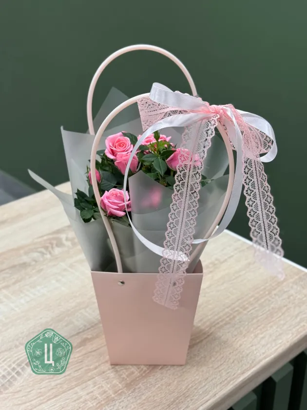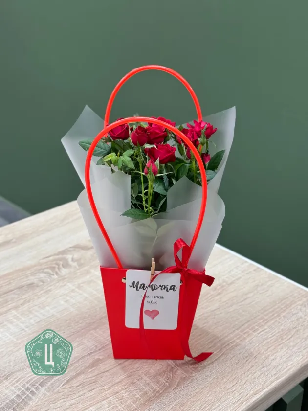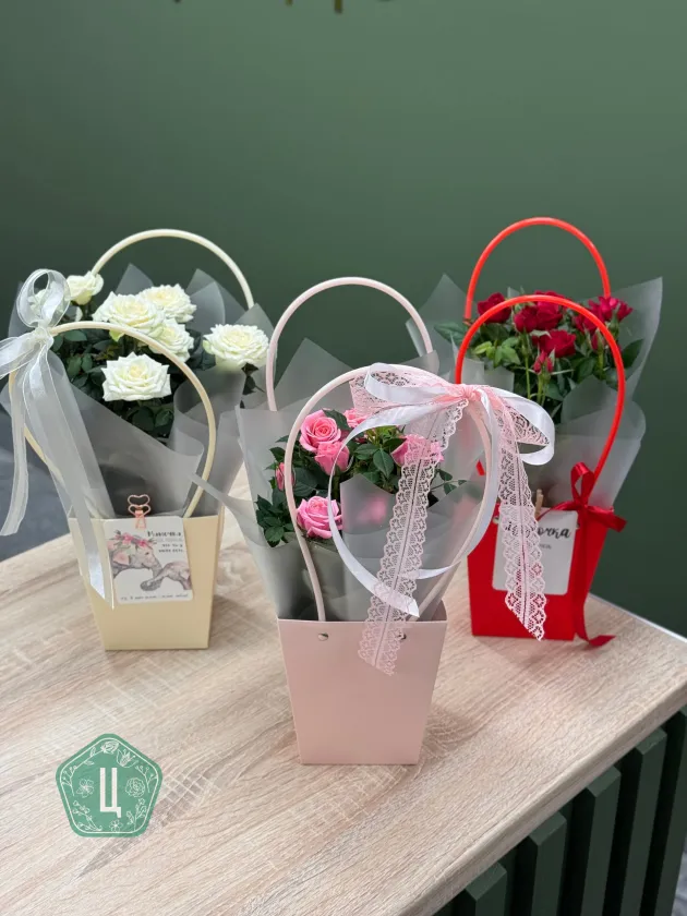 Роза Кордана в стильной сумочке 🌿 Цены на цветы могут изменяться от поставки к поставке. Точную стоимость букета узнавайте по кнопке «Написать» Мы принимаем оплату банковским переводом (при оформлении предзаказа) или наличными/по карте при самовывозе. · Самовывоз из салона по адресу: Областная, 5 — бесплатно · Стоимость доставки 400 ₽ по Ижевску.